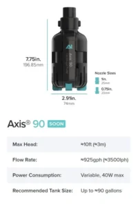 Whether you’re managing an AIO or a 90-gallon reef, the Axis 90 gives you return power without the bulk—while keeping your hands off the sump.