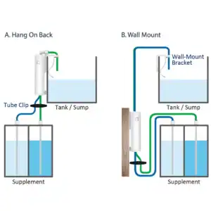 The AutoAqua Smart Doser 2 Dosing Pump includes both hang-on-back and wall-mount options for flexible placement. Consequently, it works just as well on nano tanks as it does on larger reef systems.