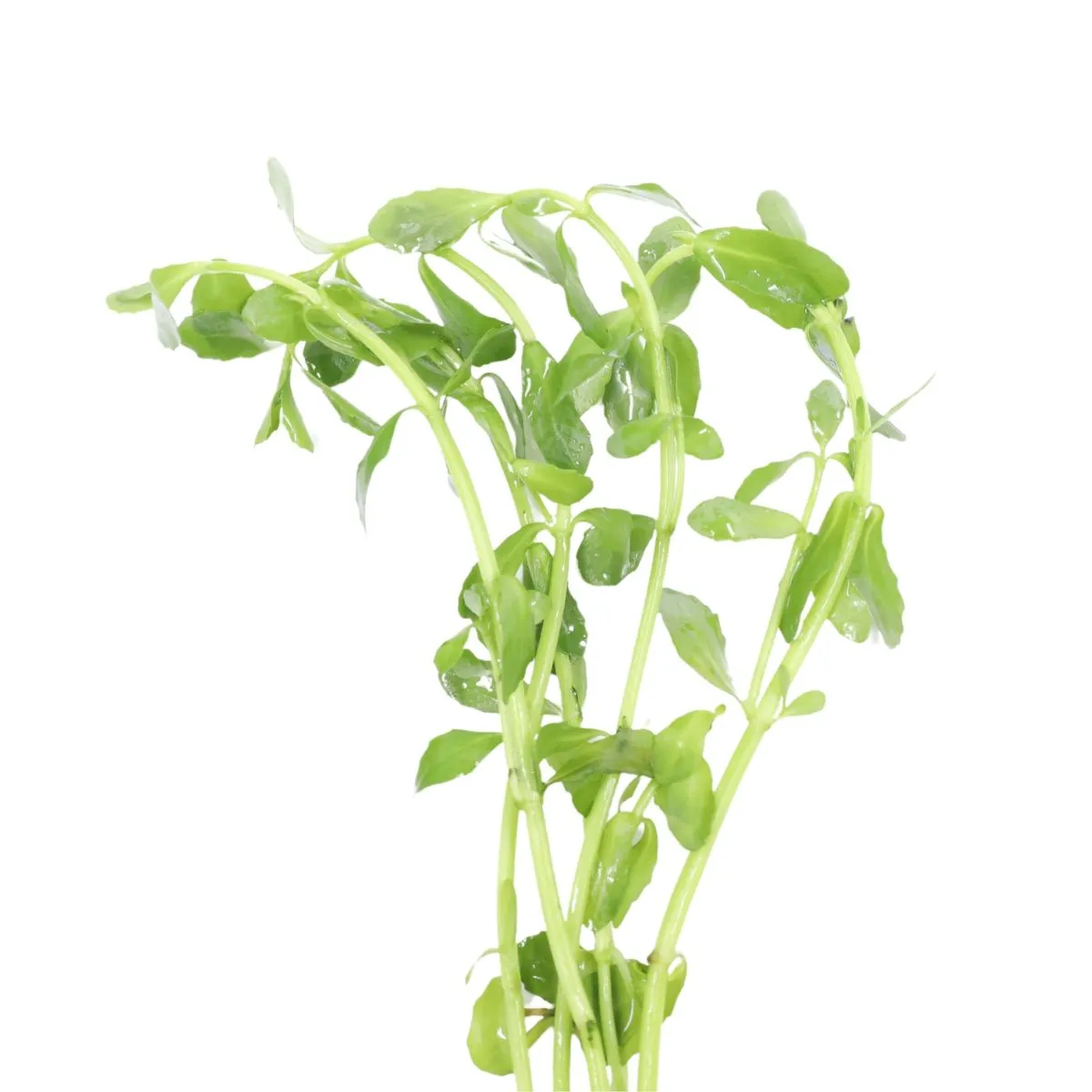 Moneywort grows in tidy vertical lines, each stem dotted with slightly succulent leaves that seem to catch every bit of light. In groups, it builds a solid backdrop for smaller plants and swimming space up front. Pair it with driftwood or colorful stem plants, and it adds the kind of contrast that makes an aquascape feel finished.
