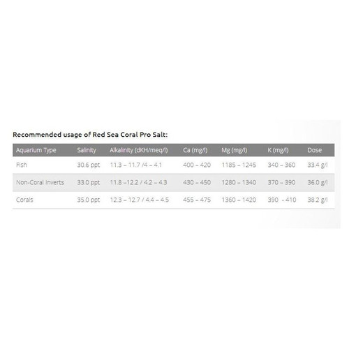 Specs for the Coral Pro Salt 200 Gallon Sack by Red Sea
