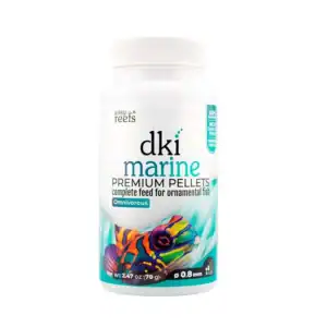 Easy Reefs DKI Marine is a balanced pellet food designed to meet the nutritional needs of omnivorous saltwater fish. It comes in three pellet sizes: 0.8mm, 1.2mm, and 2.0mm, offering versatility for different fish sizes and feeding preferences. The pellets are neutrally buoyant, ensuring optimal feeding opportunities throughout the water column.