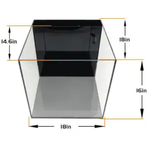 - Tank dimensions are 18 inches long, 18 inches wide, and 16 inches tall