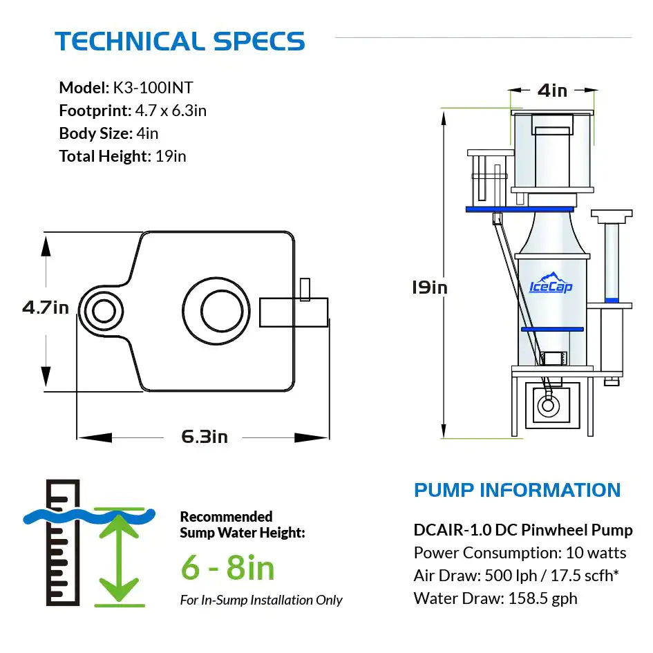 IceCap K3-100INT In-Sump Protein Skimmer