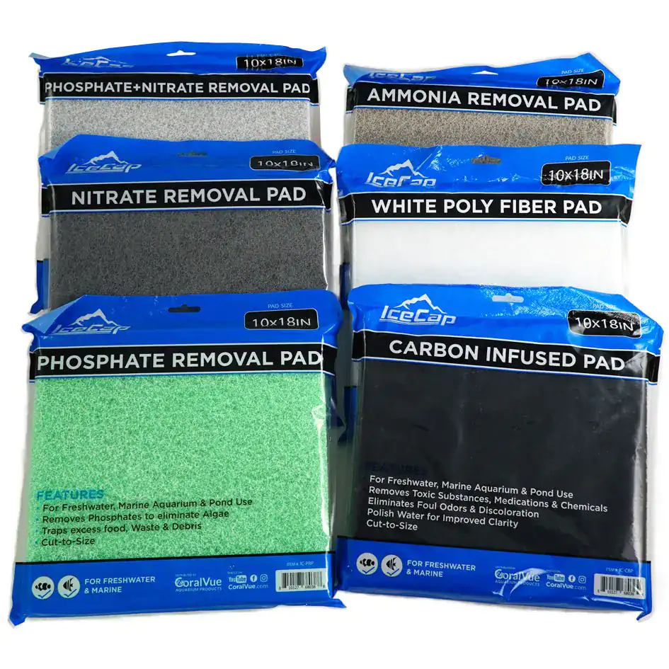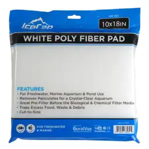 IceCap White Poly Fiber Filter Pad. A cut-to-size filtration pad for the removes of particles in ponds, freshwater, and marine aquarium. It traps excess waste, food, and debris in its padding.Weight