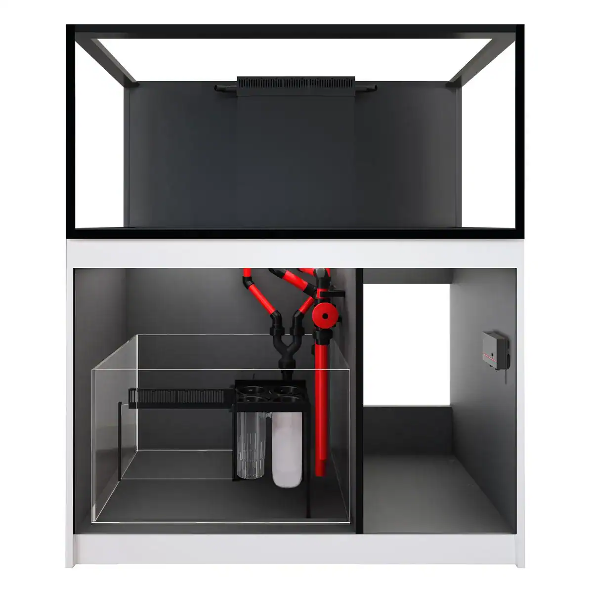Beneath the display, the glass sump is laid out for straightforward access and upgrade flexibility. Its design makes it easy to integrate a variety of filtration options, including fleece rollers, protein skimmers, media reactors, or refugium sections.