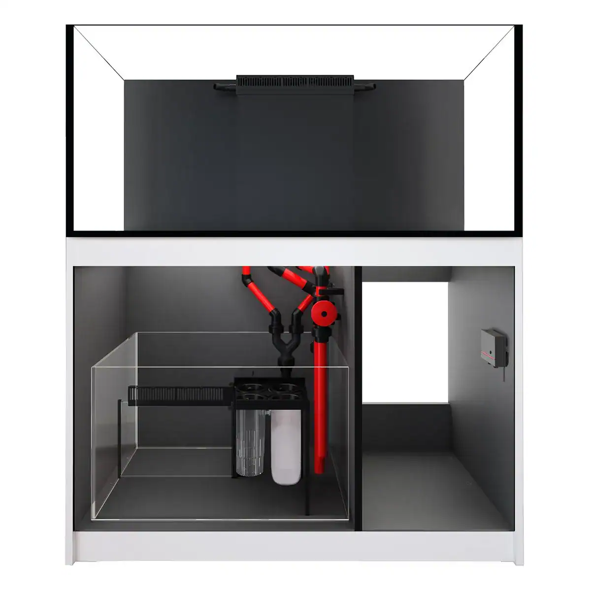 Inside, the cabinet offers generous space for skimmers, media reactors, dosing gear, and ReefMat fleece rollers. This flexible layout grows with your reef and supports upgrades without redesigning your filtration zone.